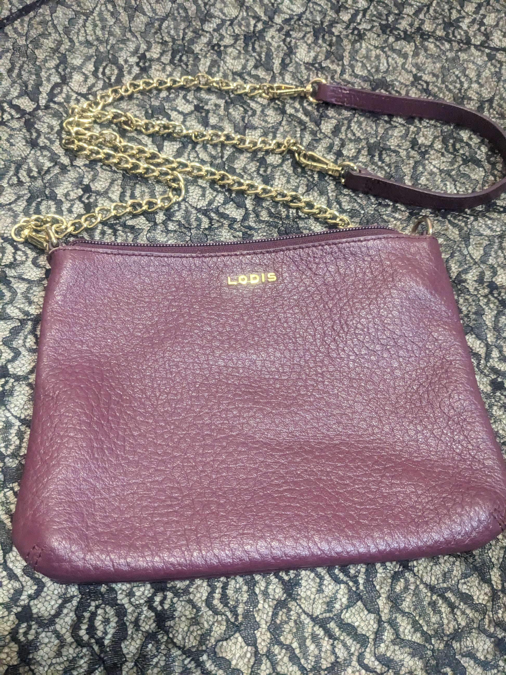 - The closure is a zipper. The purse is a convertible from clutch to cross-body bag. The chain can be positioned in multiple ways.